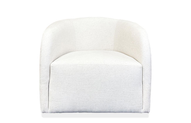 Swivel base rotates 180 degrees before returning to its original position. This barrel chair features gently sloped arms and top-stitching. It pairs great with sofa Style 5010. All frames corner blocked. Products meet the requirements of the Bureau of Household Goods and Services Technical Bulletin No. 117-2013.
