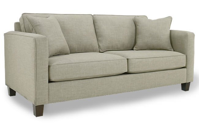 Sleek track arms and box cushions give this group a modern look and feel. Both seat and back cushions are detailed with welt cord adding to the clean styling of this group. Walnut-colored tapered wood legs complete this set. *ALSO AVAILABLE AS A SECTIONAL-SEE ALTERNATE IMAGES FOR LAYOUT OPTIONS* *PLEASE NOTE: SOFA SECTIONAL WILL HAVE 3 CUSHIONS* Also available as a sleeper. Upgraded sleeper mattress and contract sleeper mechanism are standard. The sleeper mattress is a 6"H sleeper mattress featuring a gel-embedded memory foam comfort layer on top of an innerspring mattress. Please note: sleepers will have a taller front rail and shorter legs in order to accommodate the sleeper mechanism. All frames corner blocked. Products meet the requirements of the Bureau of Household Goods and Services Technical Bulletin No. 117-2013.