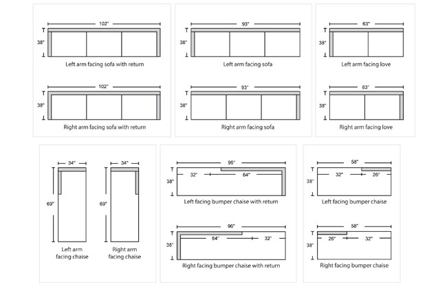 | 1 arm sofa with return | 102 | 38 | 34 | 15.5 |