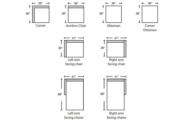 | Corner ottoman | 36 | 36 | 17 | 3 |