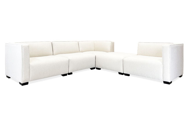 This modular collection features waterfall front seats and welt detailed backs. All pieces can be attached to one-another with sectional connectors or stand individually. Corner ottoman has four seams around top edge (no waterfall front). *Chaise has a seam across the top of the seat cushion.* All frames corner blocked. Products meet the requirements of the Bureau of Household Goods and Services Technical Bulletin No. 117-2013.