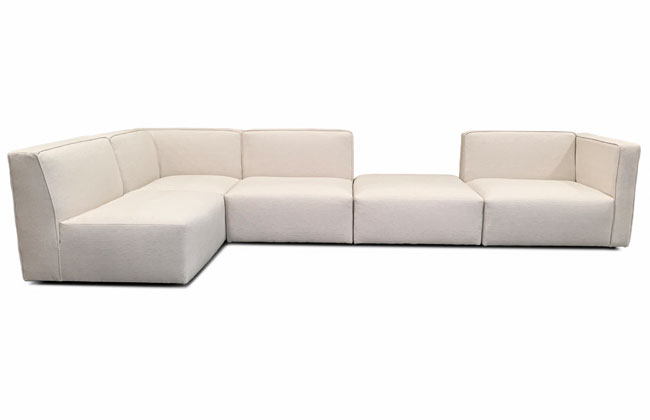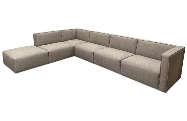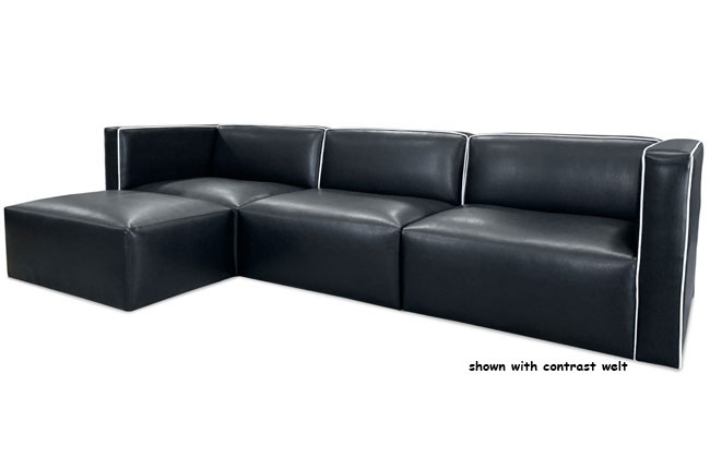 This modular collection features waterfall front seats and welt detailed backs. All pieces can be attached to one-another with sectional connectors or stand individually. Corner ottoman has four seams around top edge (no waterfall front). *Chaise has a seam across the top of the seat cushion.* All frames corner blocked. Products meet the requirements of the Bureau of Household Goods and Services Technical Bulletin No. 117-2013.
