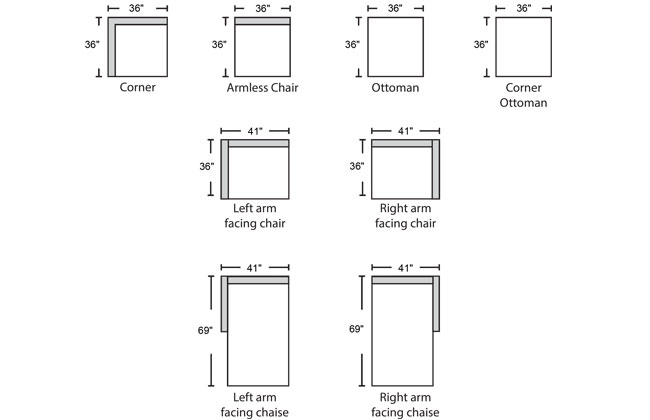 | Corner Ottoman | 36 | 36 | 16 | 3 |
