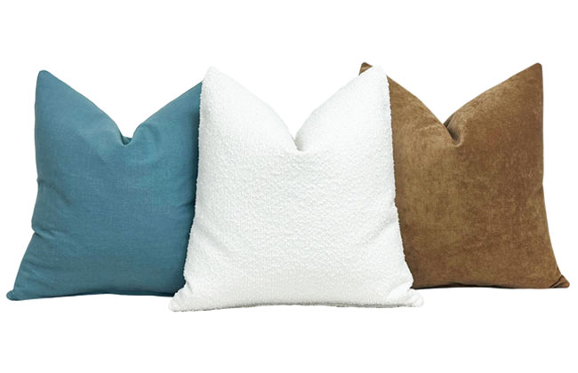 Knife edge pillows with zipper closure. Choose a feather/down OR down-alternative insert. If no selection is specified, a feather/down insert will be used. Bolster pillow has a foam insert & welt. Pillows are offered in six sizes: 26" x 26", 24" x 24", 22" x 22", 20" x 20", 14" x 22", & 6" x 23" bolster.