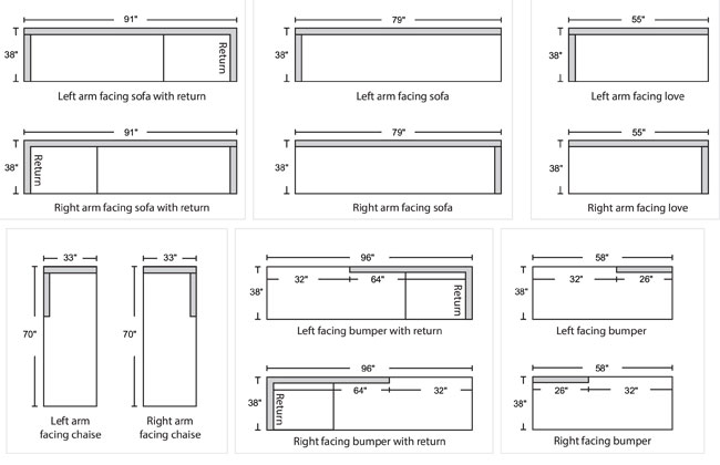 | 1 arm sofa with return | 91 | 38 | 35 | 15 |