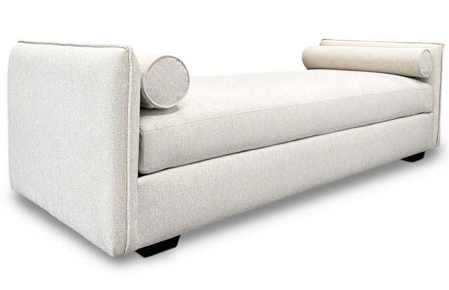This bench is part of our Style 2622 collection. 1/2" Flanged seams detail the arms and bench seat cushion seams are top stitched. Java block legs are recessed to create a floating look. Includes 2 bolster pillows as shown. Products meet the requirements of the Bureau of Household Goods and Services Technical Bulletin No. 117-2013.